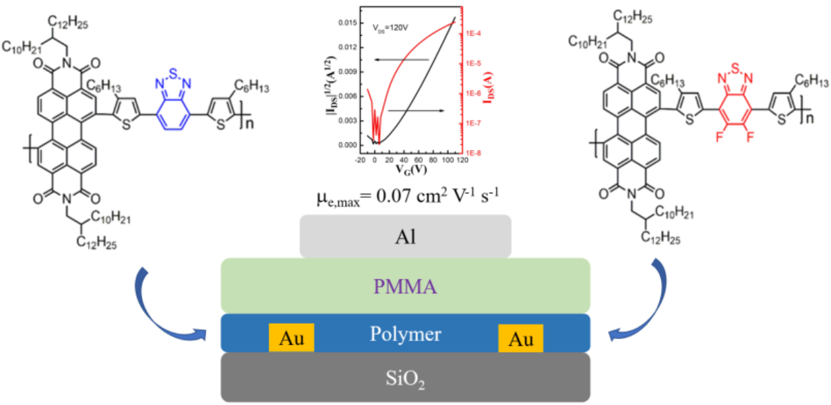8. Zhonghai Tang, Xuyang Wei, Weifeng Zhang,* Yankai Zhou, Congyuan Wei, Jianyao Huang, Zhihui Chen, Liping Wang,* and Gui Yu,* An A−D−Aʹ−Dʹ Strategy Enables Perylenediimide-Based Polymer Dyes Exhibiting Enhanced Electron Transport Characteristics , Polymer, 2019, 180, 121712.